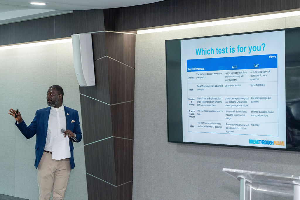 For many high school students, it’s time to think about taking the SAT or ACT tests. At the Carnival Scholarship & Mentoring Program, we know how important these test scores are for college admissions. We invited Webber Charles, director of student achievement from Breakthrough Miami, to speak to the sophomores and juniors about the college admissions process and the difference between the SAT and ACT tests. The group played Kahoot after his presentation, and the winners earned some nice prizes!